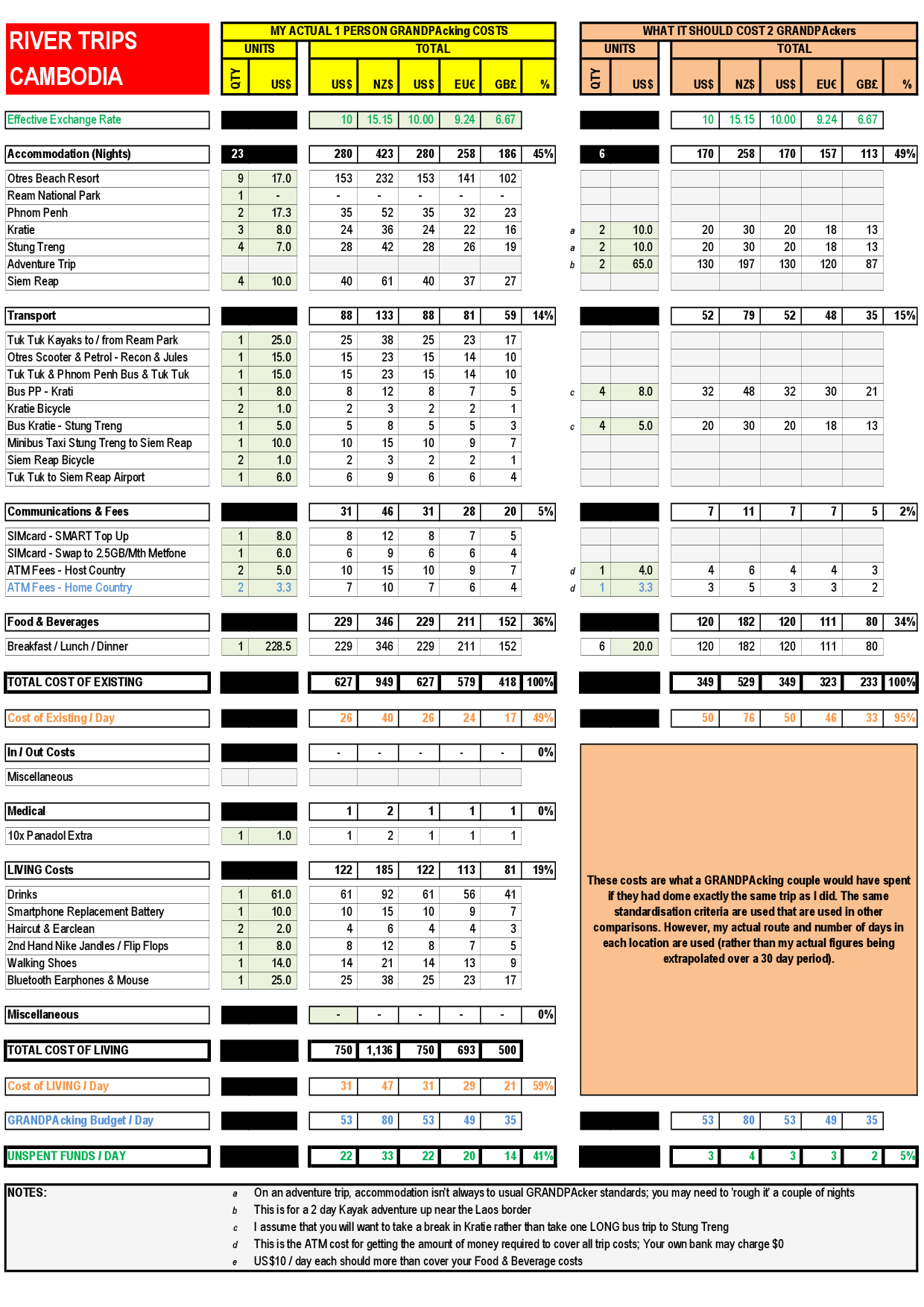 For 2 GRANDPAckers, I have assumed that their costs start in Phnom Penh and that they are going on a 1 week ‘break’ to Stung Treng specifically to do a 3 Day / 2 Night ‘adventure’ trip.