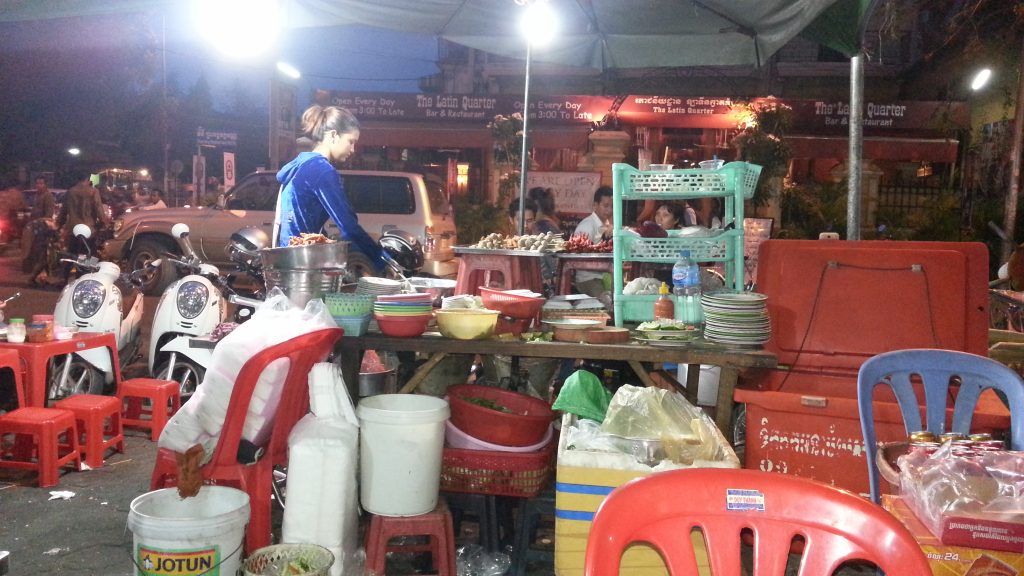 On my 2nd night in PP, I walked into a local cafe about 30m from my hotel. I sat and worked. I got through 4 cans of Angkor and a Pork Loc Lak for US$3.50.