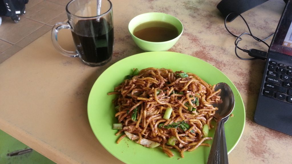 There is a little cafe at the bus terminal where I stopped for breakfast. Fried noodles with egg and a Kopi-O for MYR6.