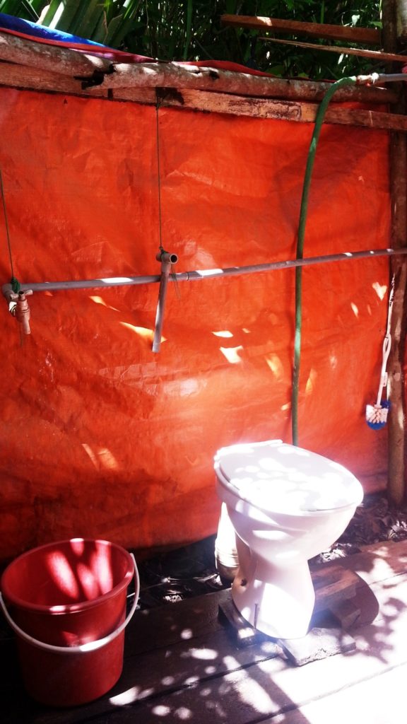 - The toilets and showers are in ripped tarpaulin / tenting that is just above head height with no mozzie nets above