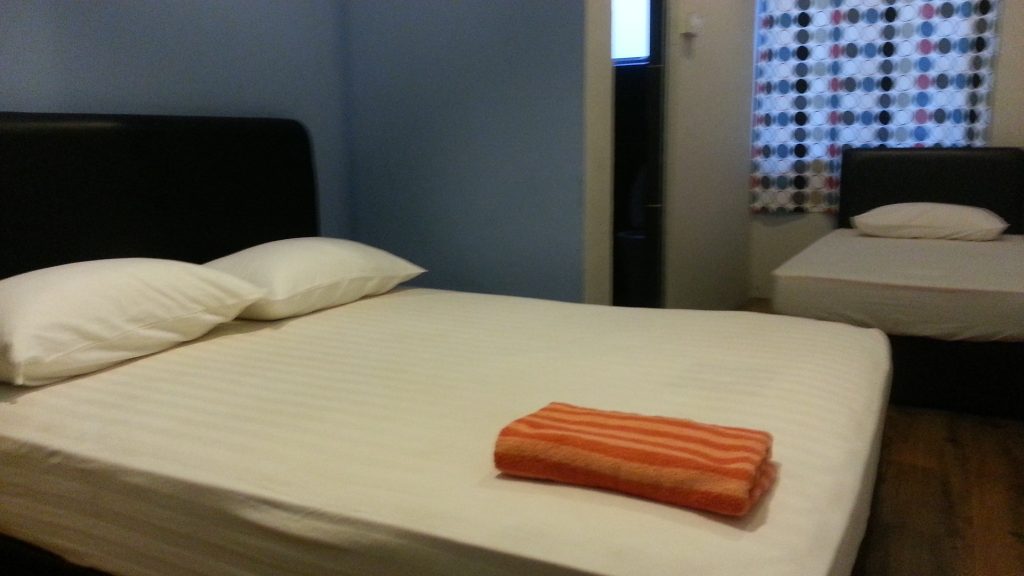 May Fair Hotel: Probably the best value for money that I found. It is one street back from the corner of Jalan Pryer and Jalan Empat. It offers a Double with aircon, cable tv, one free rental dvd / day, in-room wifi, and hot water ensuite for MYR50 (1 person) or MYR55 (2 people). The downside is that there’s no shared area to meet other people.