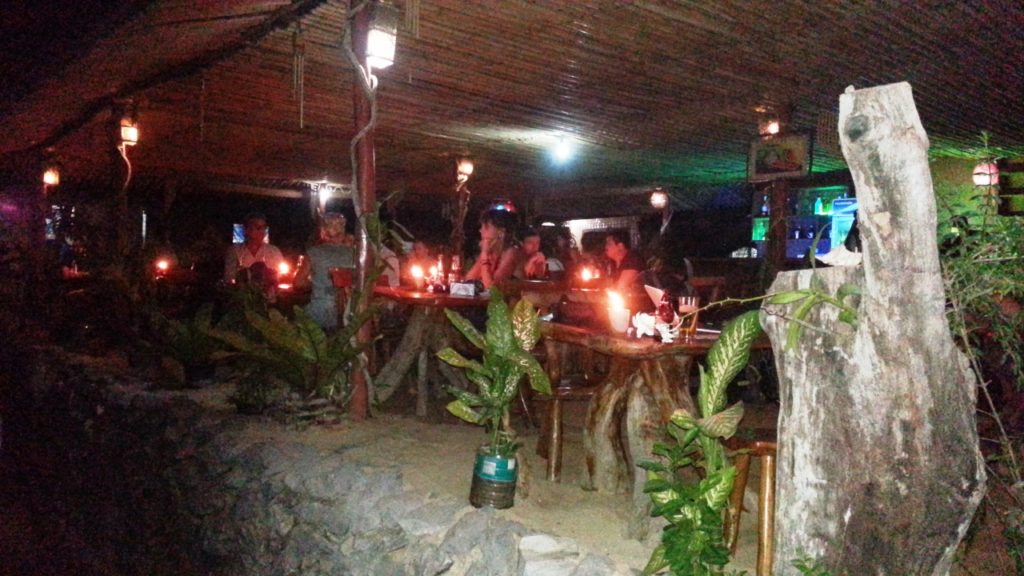 I headed back through town and found the Little Italy which has a bar / restaurant upstairs. The tables were full, but the prices were a bit pricey anyway. I stayed for a Happy Hour PHP50 San Miguel and moved on. The Little Italy had a nice, relaxed atmosphere and may be a good place to spend some ‘LIVING’ funds should you ever have any money left out of your daily budget – which, in El Nido, I doubt. However, I did end up there after my El Nido Island Hopping Trip – I shared a Bacon Burger and 4-Cheese Pizza and had a couple of San Miguels – my share of the bill was PHP420.