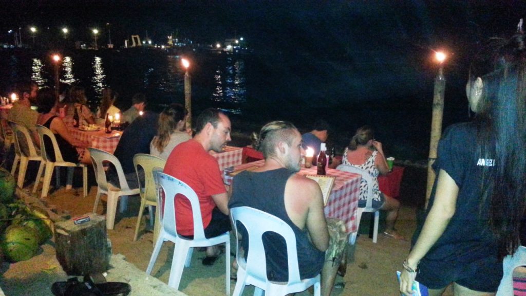 A meal in the cheapest beachfront restaurant will cost at least PHP150; I had a Thai Chicken Curry for that price (it was very average).