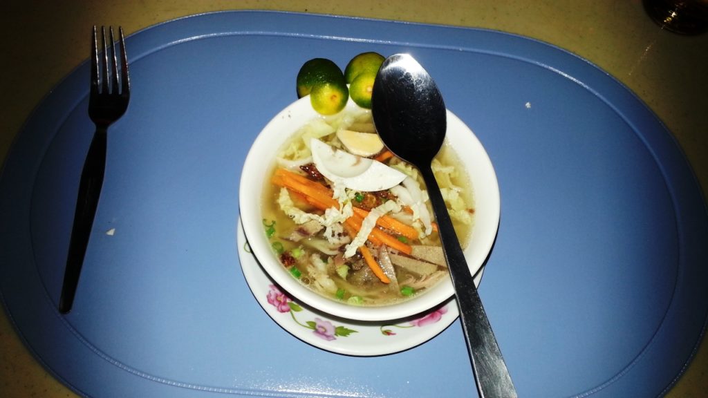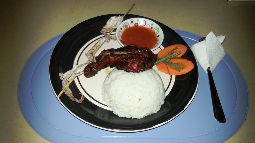 Their BBQ meals are reasonably priced. One night I had a Vegetable Noodle Soup as a starter followed by BBQ Chicken with a Dried Squid Kebab with Rice. The total cost was PHP120.