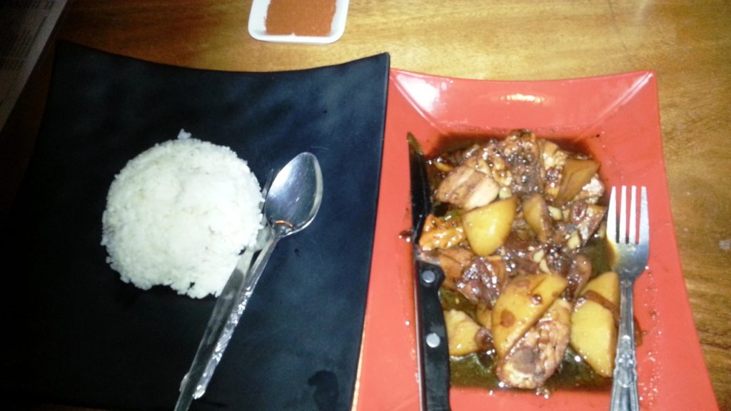 Something like a Chicken Alobo (chicken in a coconut sauce) with Rice costs PHP195. The price is the same for a Chicken Curry with Rice. Pork dishes with Rice tend to average PHP240, beef dishes PHP270, and fish dishes PHP300. Two Fried Eggs with Toast and Coffee for Breakfast costs PHP100.