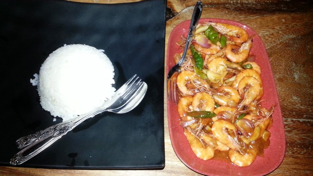 I treated myself one night and had Chilli Garlic Prawns with Rice (PHP320).