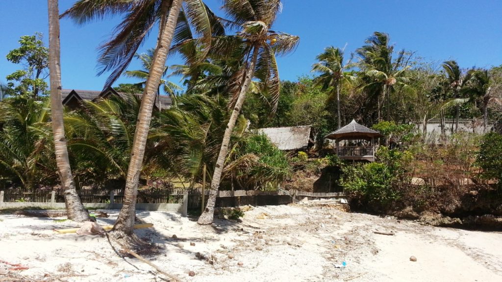 You cannot walk along the beachfront, you need to double back and, then, head north to Ligutan Beach.