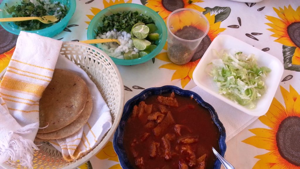 Another cheap place is Plaza De La Solidad where a large street stall sets up every day. Here you can get a meal for MXP15-25. I tried the most expensive dish on their menu: Menudo for MXP45. It was a traditional ‘offal’ soup with side dishes … I won’t be eating it again. 🙂