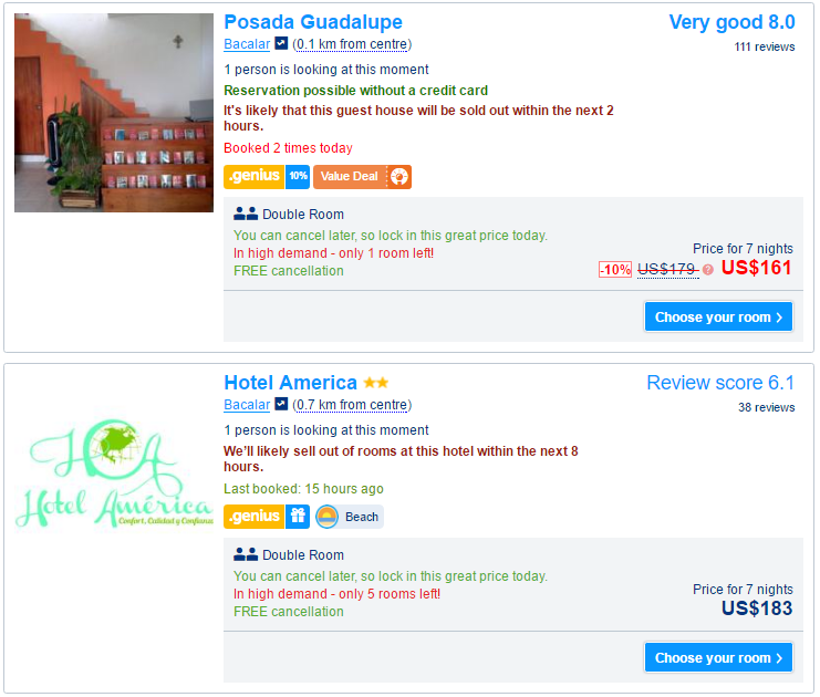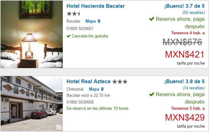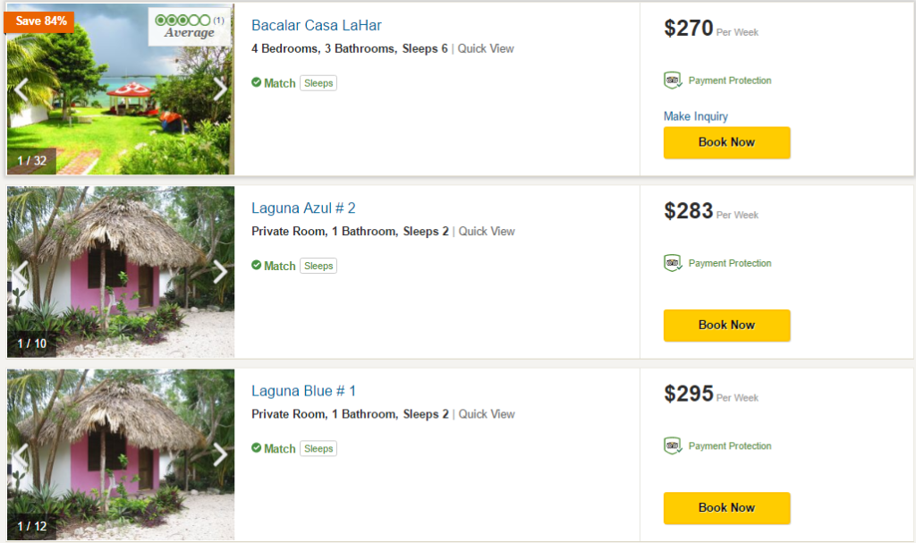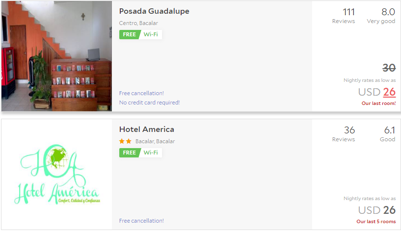 As is usual in such Mexican Tourist spots, almost all (if not all) ‘western quality’ accommodation is online.
