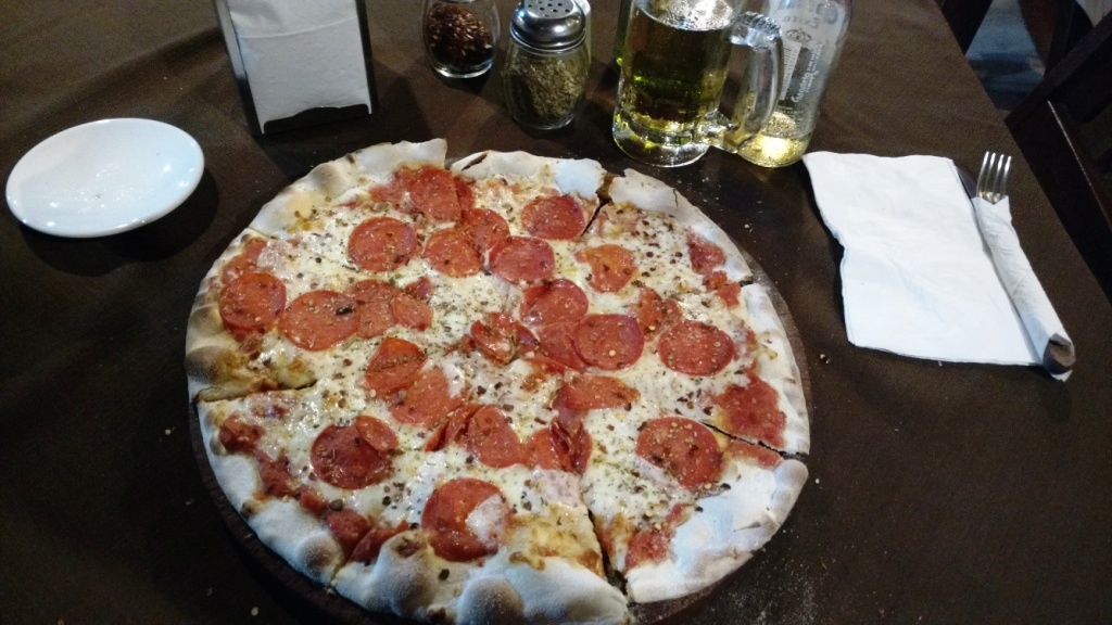 Finally, I tried another highly recommended restaurant: The Pizzeria Bertilla on the corner of Ave 5 and Calle 20. A Peperoni pizza was MXP90 and a beer MXP25.