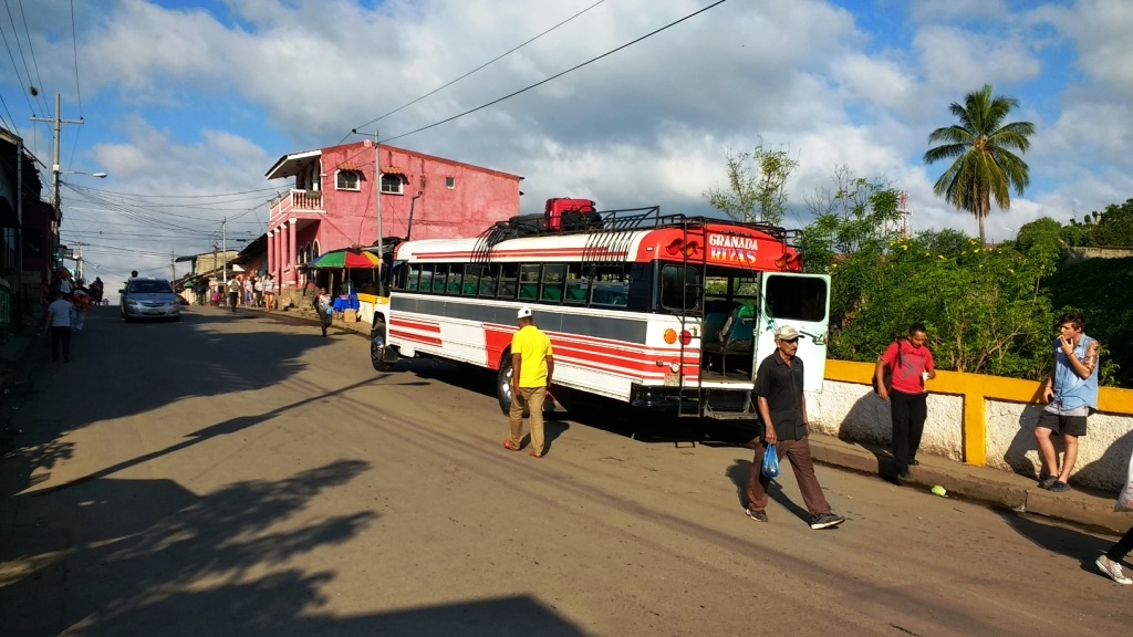 We were targeting the 8:05am bus. We arrived at 7:40am. Our bus was waiting. Our luggage was thrown up on the roof and we claimed our seats. We left on time. The price was N$70 to Rivas (but, we may have paid 2x N$35 … to pay for our over-sized bags). The bus wasn’t full.
