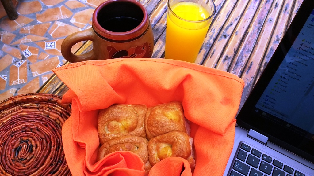 Our room rate included a small (insufficient) free Breakfast … which was coffee, orange juice, and 2 small buns each.