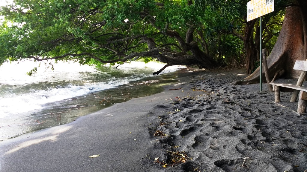 You soon pass the best beach area on the island which lies between Santa Cruz and Santa Domingo. Along the way, you find small pockets of sandy beach. Alas, when we were on Ometepe, the lake was the highest that it has been for over 10 years … and, most of the beach was underwater.