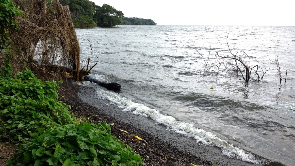 The coastline of Ometepe is not beautiful. The beauty mainly lies in the constant view of one or both of the island’s volcanoes.