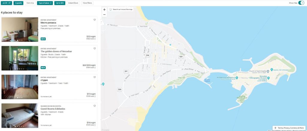 PLEASE NOTE: AirBnB seems to be particularly good in Bulgaria. Other sites (such as Homeaway, FlipKey and VRBO are also worth a look).