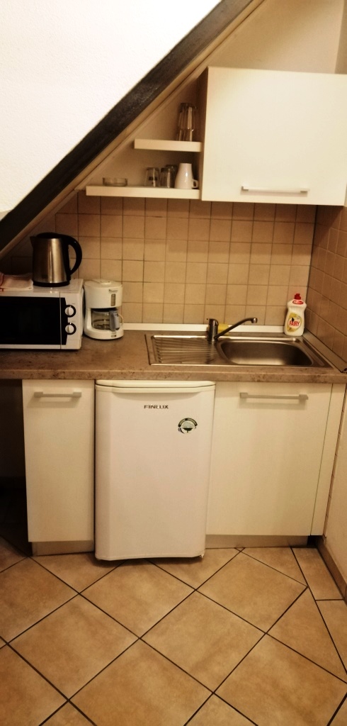 It had a small kitchenette with a kettle, coffee maker (coffee was provided free), small fridge / freezer, and a microwave …
