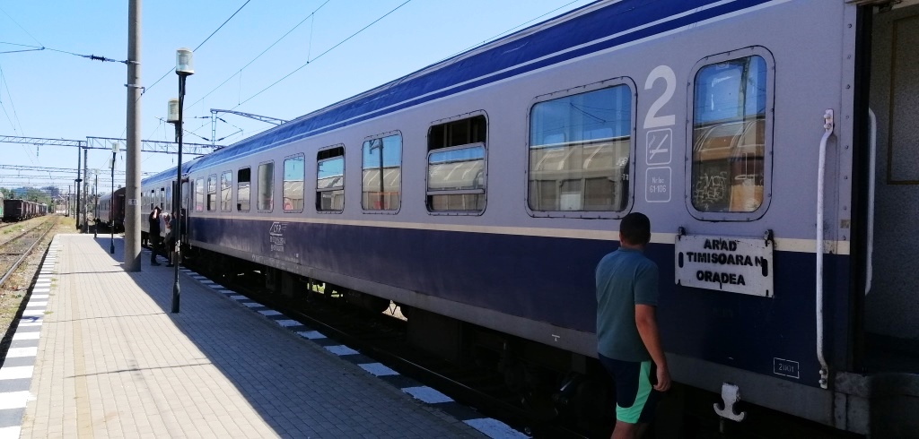 The Timisoara-Arad train left at 1:04pm and was scheduled to arrive in Arad at 2:13pm. On this short trip, you are not assigned a seat. It is an old train … even the doors don’t close properly when it is moving. 2nd class has cubicles that sit 6 people.