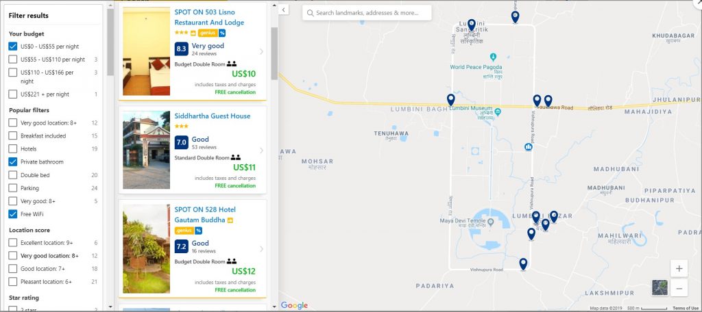 PLEASE NOTE: HOTELS usually display prices INCLUSIVE of TAXES. But many search sites (like HOTELS) don’t provide a ‘private bathroom’ filter, so be careful with some of the cheap hotels and make sure that you read the room details. HOTELS competes with BOOKING by selling their hotel allocations well in advance. They do so by offering discounts. At short notice, they tend to have few options left.
