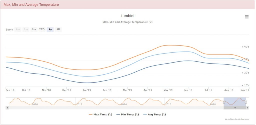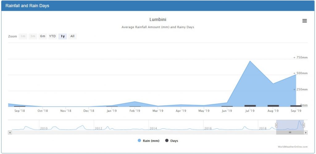 The ‘Terai’ has a similar climate to the northern plains of India: hot as a furnace from May to October and drenched by monsoon rains from June through September.