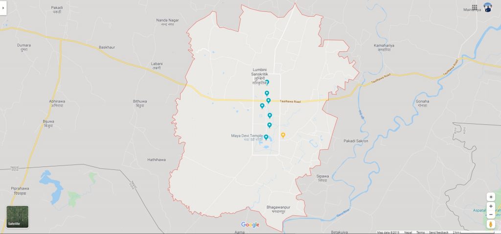 Lumbinī is locate 260 kms west of Kathmandu and 165 kms southwest of Pokhara.