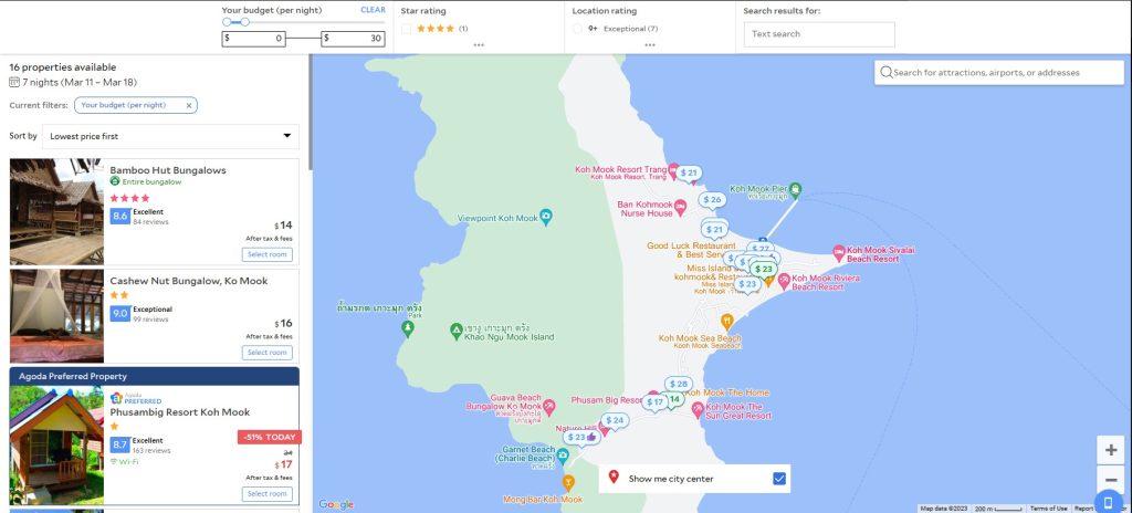 I find AGODA to be better than BOOKING and HOTELS in this area of Thailand.