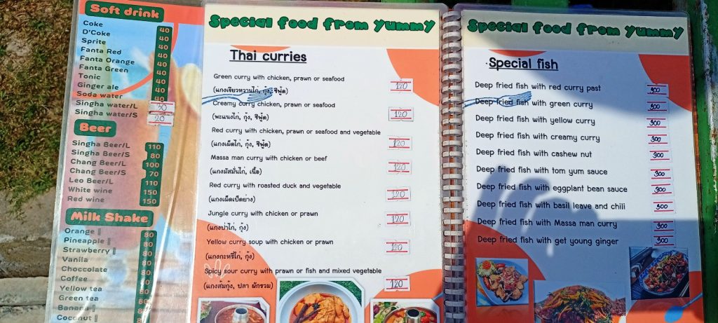 The ‘average’ price of a meal at the Resort was THB250-THB350 / US$7.50-US$10.50. A large beer was THB120.