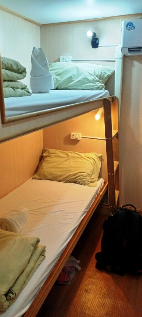 Your room is assigned once you are on the boat. I was lucky, the boat wasn’t full, so I ended up with a Twin Room to myself. Don’t expect much! These cabins are very small … but sufficient.