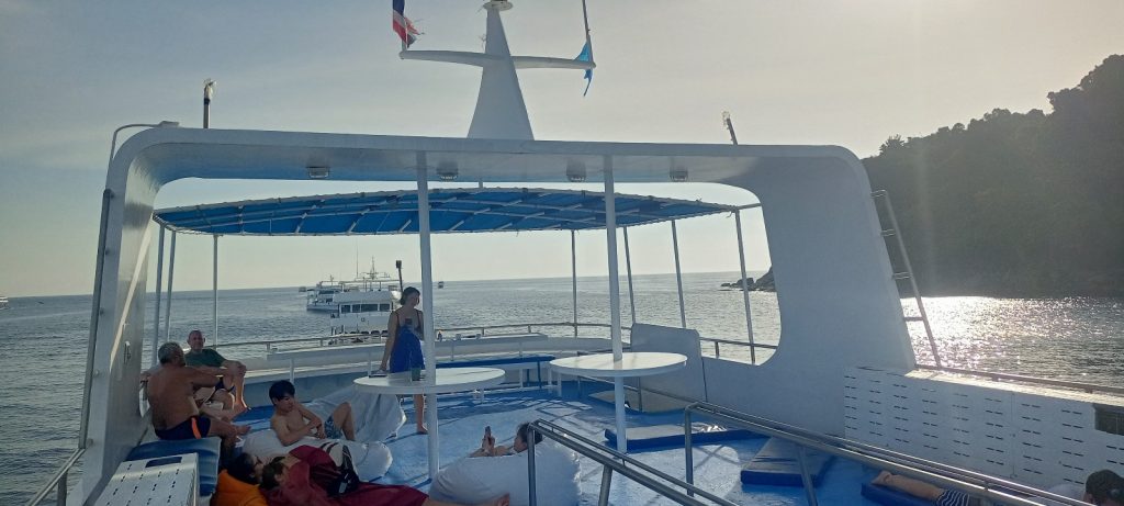 After we check in to our rooms, we return to the main diving area for a full briefing and Dinner. The food on board is not high quality but it is volumous and sufficient. The boat sets off over-night to the Similan Island.