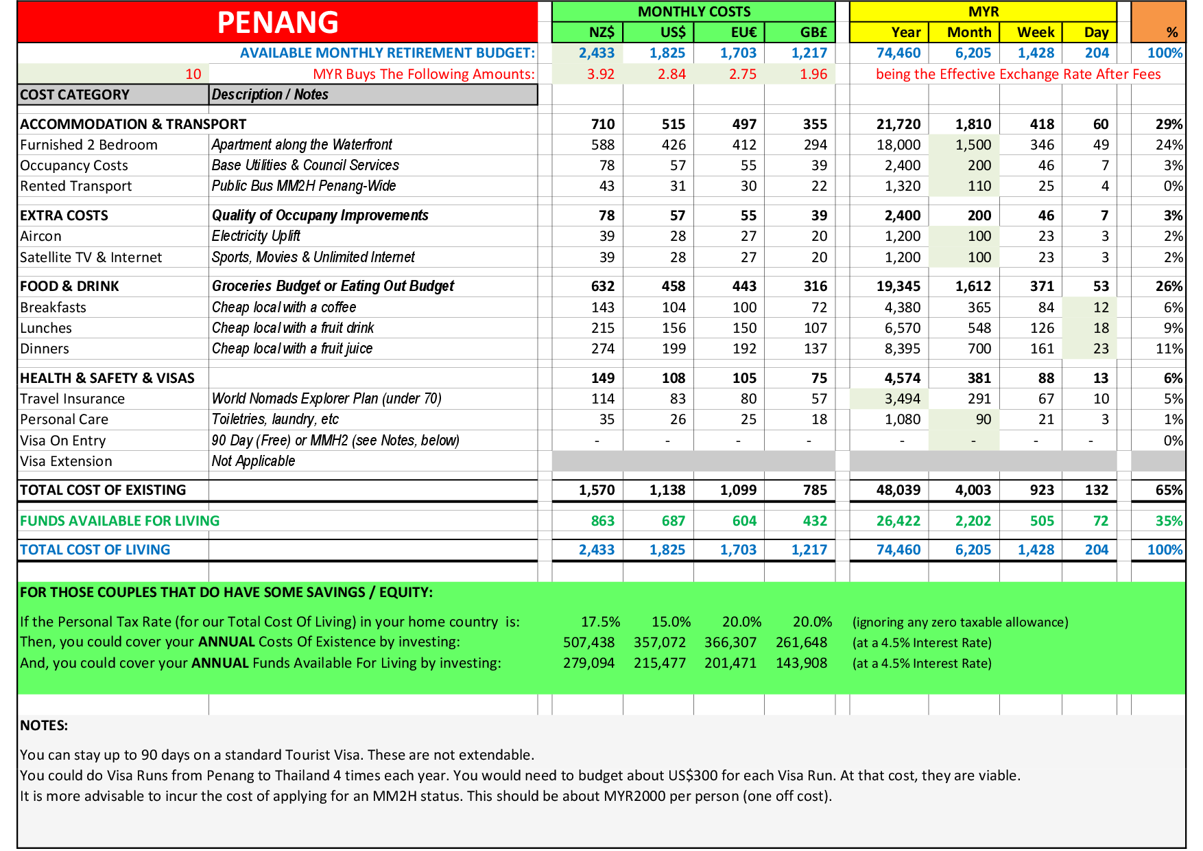 If you were to retire full time on Penang, a realistic budget would be: